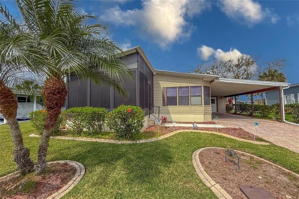 Land Owned - 2bd/2ba home on an extra large lot with a long covered carport and a workshop. The home features a very large living room with French doors that open to a beautiful lanai to enjoy your morning coffee. Kitchen features a breakfast nook area, newly installed appliances and lots of counter space. Home also has an indoor washer/dryer. Primary bedroom is oversized for king bed and furnishings. This home has a very desirable floorplan. Roof, A/C and water heater have been recently updated. Spectrum internet & cable, lawn maintenance & sprinkler system are included with your low quarterly condo/HOA fees. The Ridgewood community features a beautiful clubhouse, pool, spa, tennis courts, pickle ball courts, shuffleboard and an outdoor fitness area. Golf cart and small pet friendly, Ridgewood has close access to I-75, many restaurants, the Ellenton Outlet Mall, the Manatee County Library. Also,24-hour gated security is provided. If you are looking for a great Florida Home, don't let this one get away! Located on a quiet street with lots of community activities to enjoy in this 55+ community of Ridgewood Oaks. All room sizes are approximate. All information is deemed reliable but should be verified by buyers and or buyer's agent