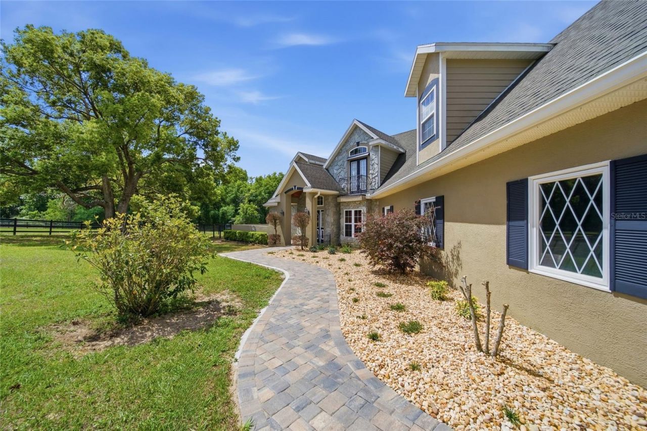 A true HIDDEN GEM, FRENCH FARMHOUSE STYLE offering unparalleled serenity and luxury. Offered for the first time by its original owners, this custom-built estate sits on 11 MOL private acres and boasts breathtaking views of the rolling hills stretching from Dade City toward Orlando.This 2007-built home was designed for ultimate privacy, featuring no rear neighbors and only one neighbor to the side. The interior offers a thoughtful layout including: - 3 spacious bedrooms and 2.5 bathrooms - A dedicated home office - An expansive bonus room (easily convertible to a 4th bedroom) - Exquisite craftsmanship and two cozy wood-burning fireplaces, including one in the primary suite, abundance of storage opportunity and closets - An open floor plan with a kitchen, dining, and living room combo.The CHEF's KITCHEN features beautiful custom designed PINE cabinets, granite countertops, gas range, and plenty of storage in your large pantry!!The outdoor oasis features a screened-in pool overlooking picturesque pastures and wooded vistas. Pebble Tec pool surface with a LIFETIME guarantee. OUTDOOR lover's dream with daily turkey and deer sightings. For equestrian enthusiasts, this fully fenced estate is equestrian-ready, featuring 5 horse stalls, a tack room, and a boarding shed-offering a unique opportunity to step into an established boarding operation.Additional premium features include: -Icynene Insulation throughout for reduced energy consumption -DOUBLE INSULATED WINDOWS -A 500-gallon propane tank - A dedicated RV pad and a 20x20 storage shed. This exceptional property offers a rare combination of luxury, privacy, and versatility. It is ideal for RV owners, hobbyists, gardening or those seeking a private family compound. Please let me know if you would like to schedule a private tour or if you have any questions regarding this unique opportunity.